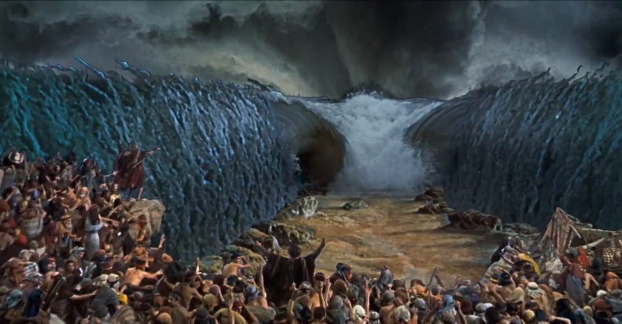 Then Moses stretched out his hand over the sea; and the Lord swept the sea back by a strong east wind all night and turned the sea into dry land, so the waters were divided. The sons of Israel went through the midst of the sea on the dry land, and the waters were like a wall to them on their right hand and on their left. Then the Egyptians took up the pursuit […]. the Lord looked down on the army of the Egyptians through the pillar of fire and cloud and […] overthrew the Egyptians in the midst of the sea. The waters returned and covered the chariots and the horsemen, even Pharaoh’s entire army that had gone into the sea after them; not even one of them remained.”