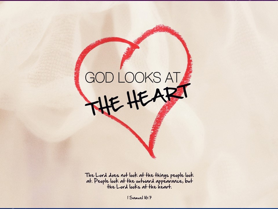 But the Lord said to Samuel, “Do not consider his appearance or his height, for I have rejected him. The Lord does not look at the things people look at. People look at the outward appearance, but the Lord looks at the heart.”