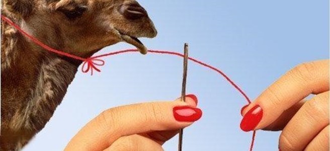 Or at least that’s the way some have interpreted this verse. Jesus says give away all your money to follow Him, and if you don’t, you’re a camel trying to fit to the eye of a needle.