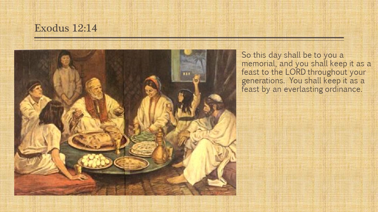 So this day shall be to you a memorial, and you shall keep it as a feast to the LORD throughout your generations. You shall keep it as a feast by an everlasting ordinance.