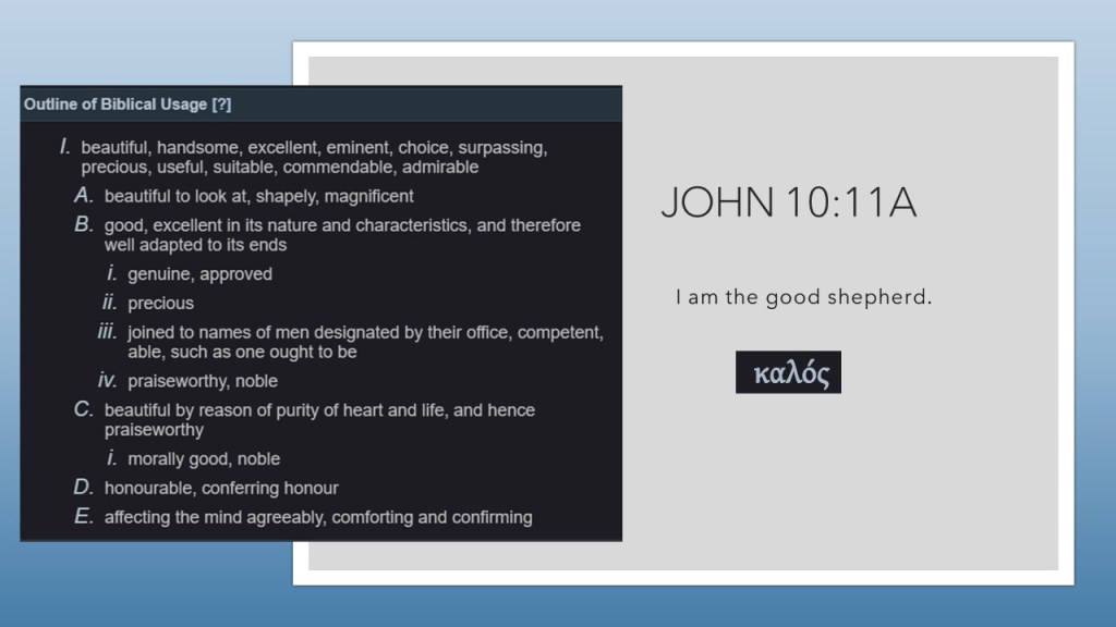 Ok, I know what you’re thinking. We’re supposed to be studying the book of John. So let’s get back to John 10:11a,