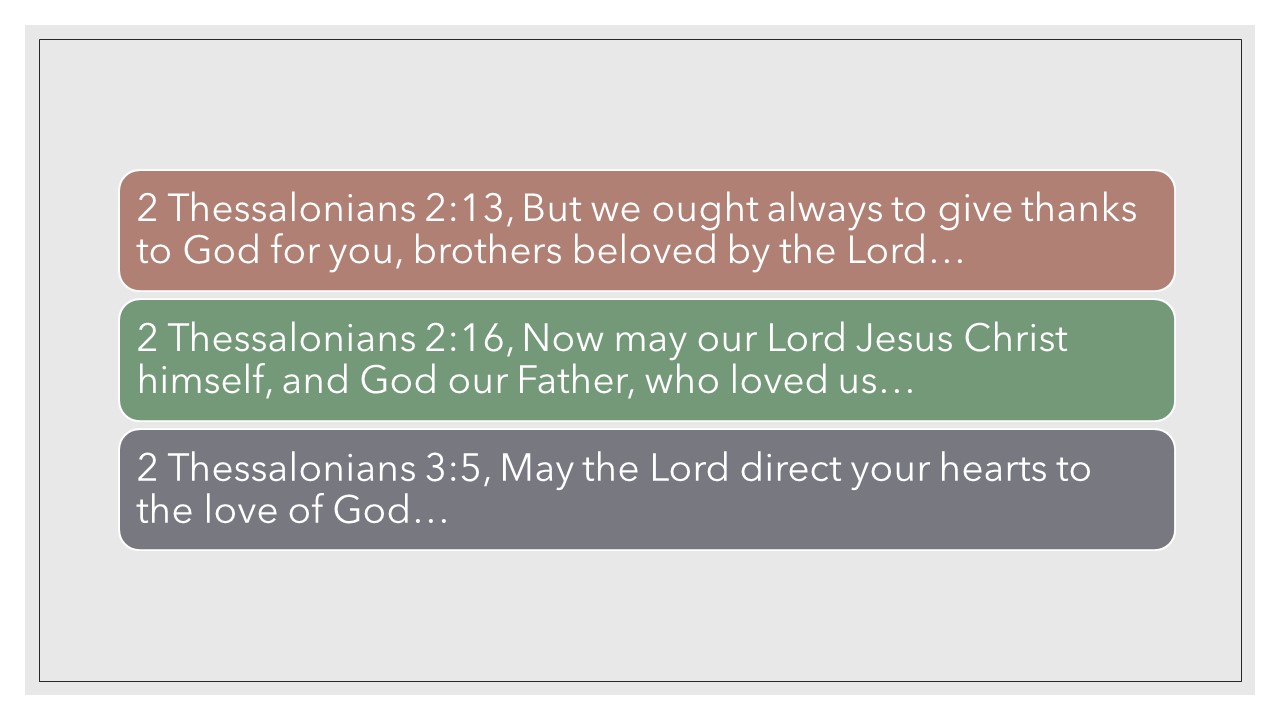 - 2 Thessalonians 2:13, But we ought always to give thanks to God for you, brothers beloved by the Lord…