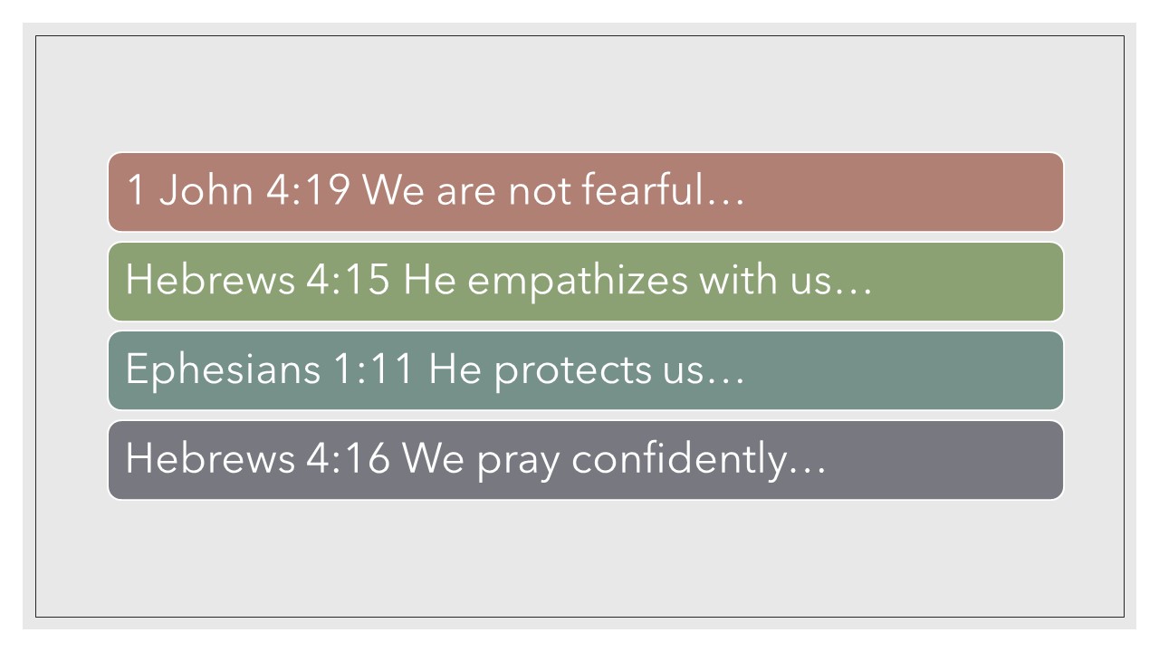 - When we know God loves us, we are not fearful to come to Him in prayer because perfect love drives out all fear (1 John 4:19).