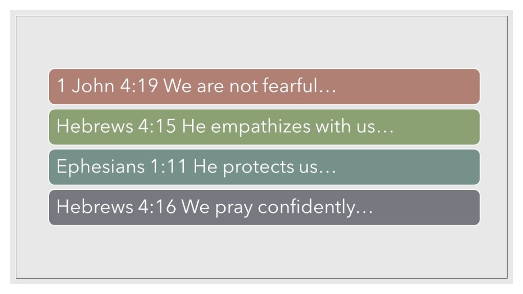 - When we know God loves us, we approach the throne of grace with confidence in prayer, knowing He provides all the mercy and grace we need and the perfect time (Hebrews 4:16).