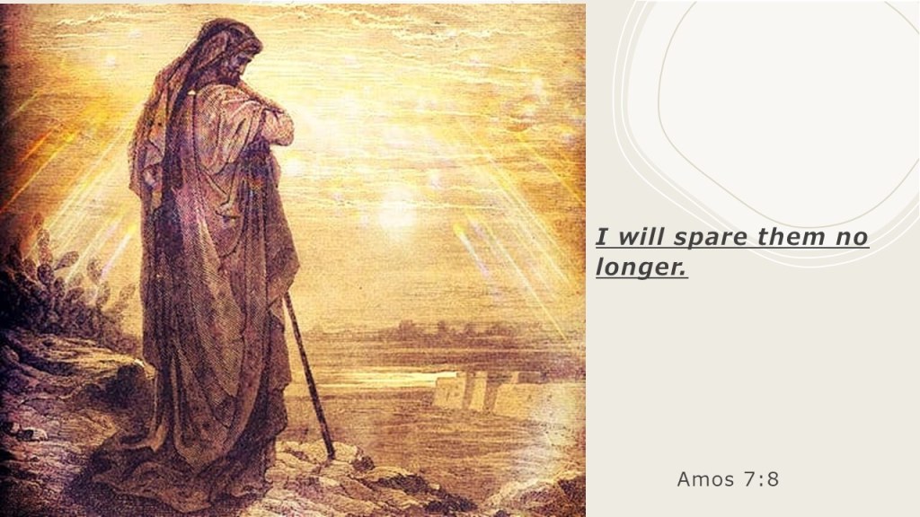 The judgements listed in Amos 7 are bad and get progressively worse, and God’s response changes the longer Judah remains in sin. God’s response to Amos’ prayers are at first like Amos 7:5-6,