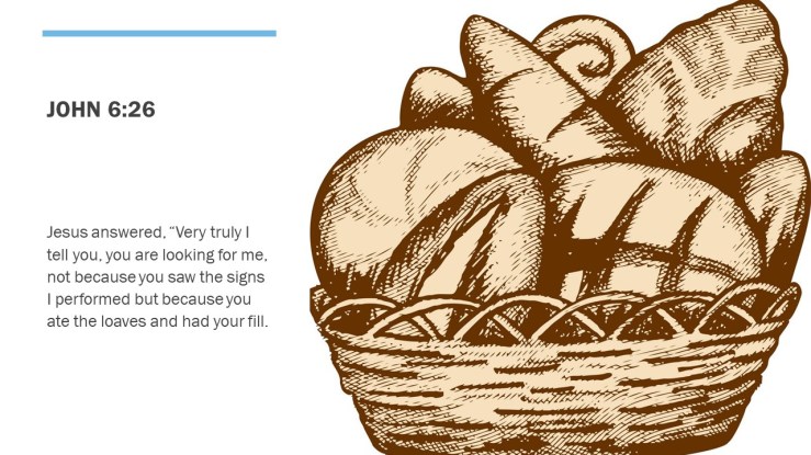 Jesus answered, “Very truly I tell you, you are looking for me, not because you saw the signs I performed but because you ate the loaves and had your fill.