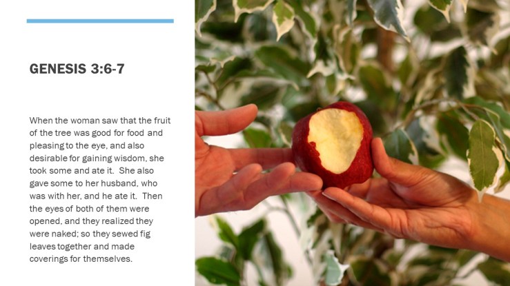 God fixed the problem. God fixed their nakedness by clothing them with the skin of a sacrificial animal. God will clothe us. We can trust that God will provide our sin sacrifice. The gospel is that He did the work, not us, and we just believe in Him. Remember Paul a little while ago, before he knew Christ, he considered himself the perfect Jew and earning his way to heaven? But then Paul became a Christian, and how does he feel about his perfect works? It’s the very next verse, Philippians 3:7-9 –