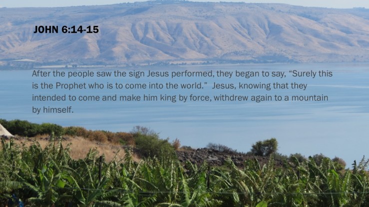 After the people saw the sign Jesus performed, they began to say, “Surely this is the Prophet who is to come into the world.” Jesus, knowing that they intended to come and make him king by force, withdrew again to a mountain by himself.