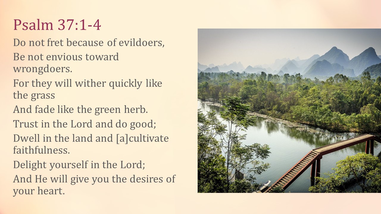 Psalm 37, a psalm of David, addresses all these concerns and more. Verse 1-4 says –