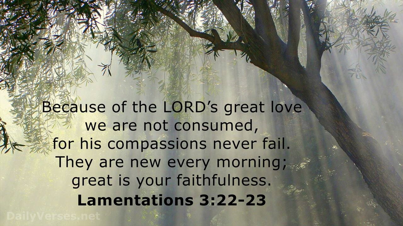 The steadfast love of the LORD never ceases; his mercies never come to an end; they are new every morning; great is your faithfulness.