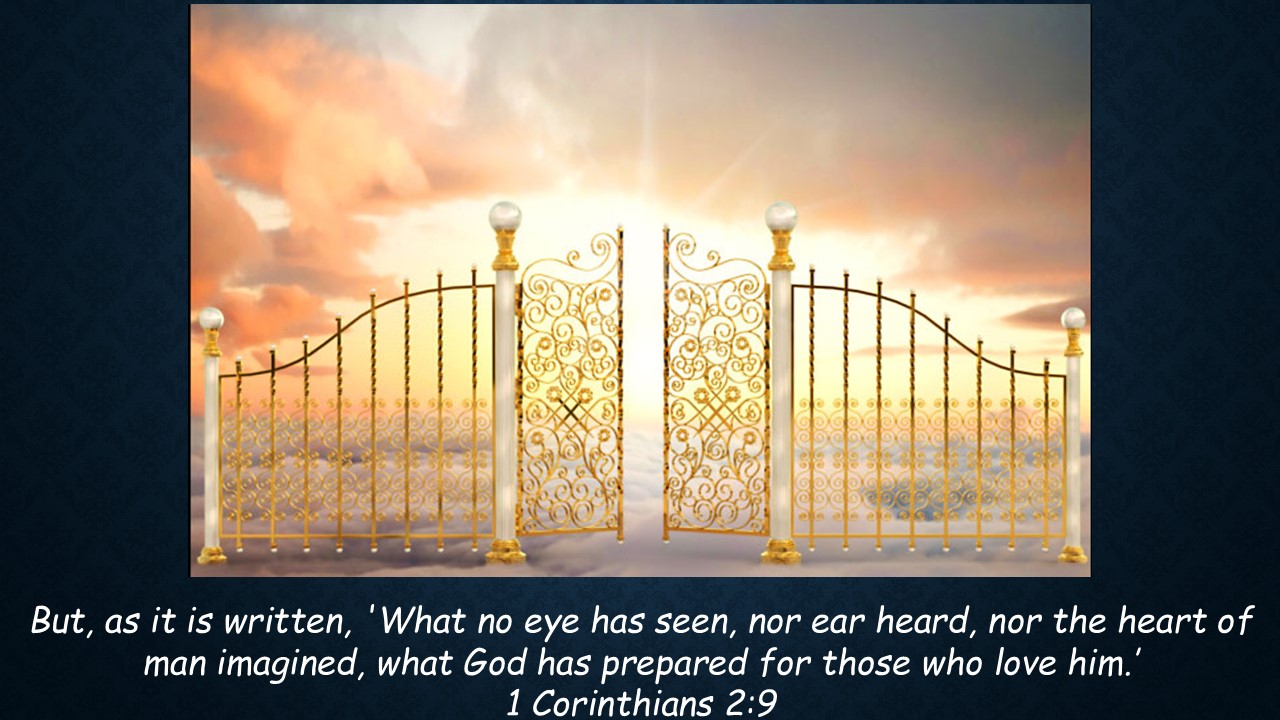But, as it is written, ‘What no eye has seen, nor ear heard, nor the heart of man imagined, what God has prepared for those who love him.’