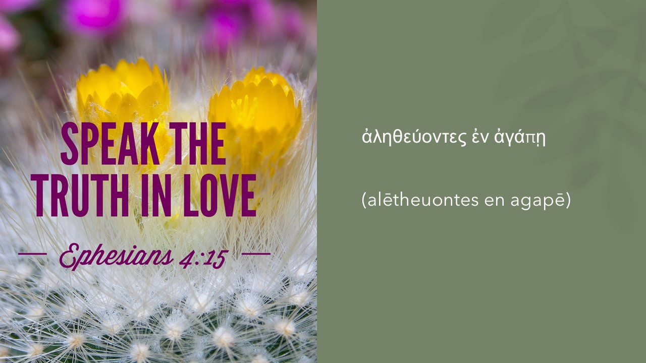 Paul highlights the importance of “speaking the truth in love.” The Greek phrase ἀληθεύοντες ἐν ἀγάπῃ (alētheuontes en agapē) goes beyond mere words—it refers to living with integrity by aligning actions and speech with the truth.