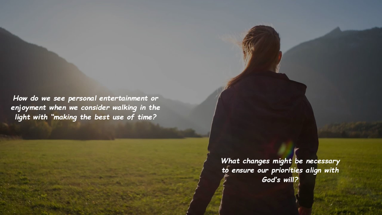 How do we see personal entertainment or enjoyment when we consider walking in the light with “making the best use of time?”