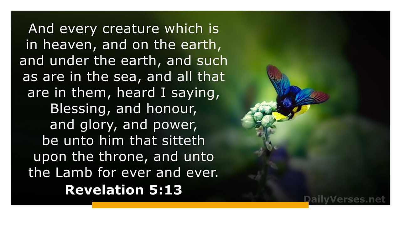 “Then I heard every creature in heaven and on earth and under the earth and on the sea, and all that is in them, saying: ‘To him who sits on the throne and to the Lamb be praise and honor and glory and power, forever and ever!’”