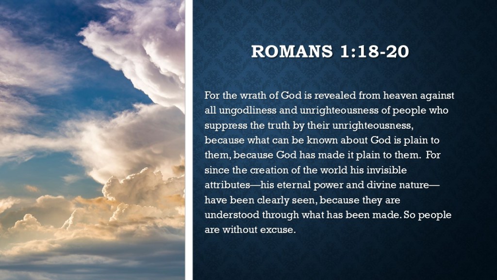 Romans 1:18-20 of course states plainly that anybody can see God’s handiwork, but some people just don’t want to: