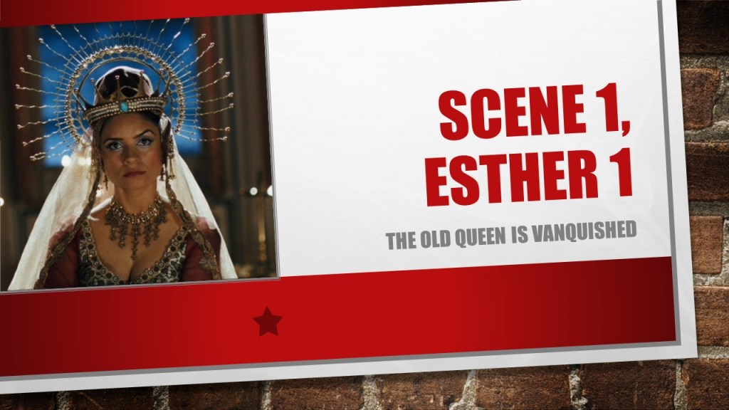 III. Scene 1, Esther 1. The Old Queen is Vanquished.