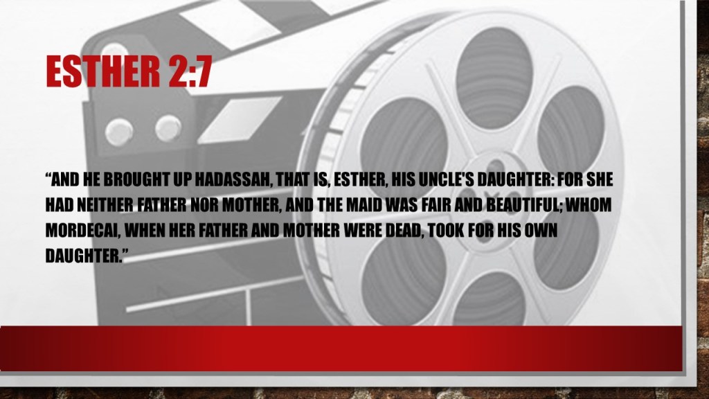 “And he brought up Hadassah, that is, Esther, his uncle’s daughter: for she had neither father nor mother, and the maid was fair and beautiful; whom Mordecai, when her father and mother were dead, took for his own daughter.”