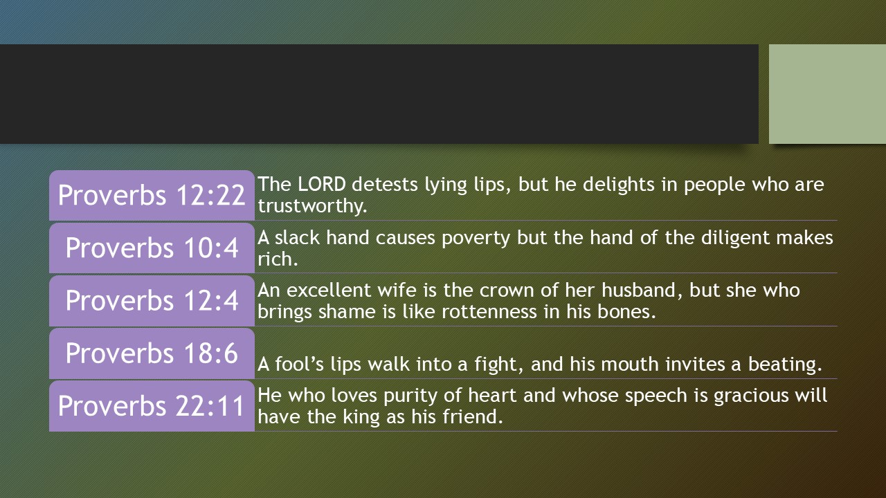 None of these truths are difficult to understand. They are not secrets to cheat at the game of life. They are simply truths, rules that God has established for us to have wise success in life. Honesty is better than lying. Work is better than laziness. Select a spouse based on their heart. Don’t keep talking when you don’t know what you’re saying. If you’re kind and gracious you will befriend influential people.