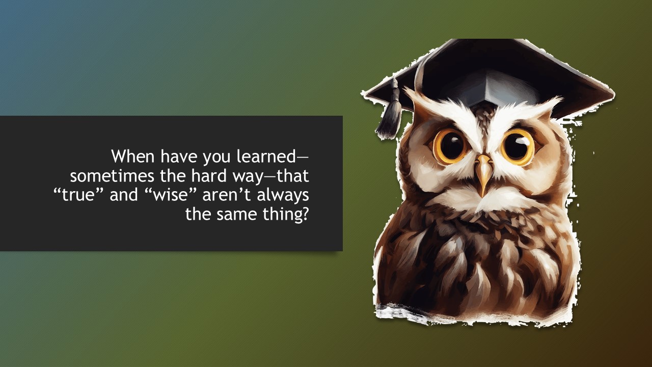 Discussion: When have you learned—sometimes the hard way—that “true” and “wise” aren’t always the same thing?