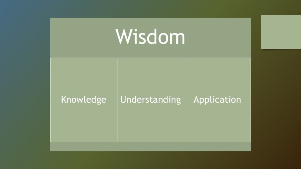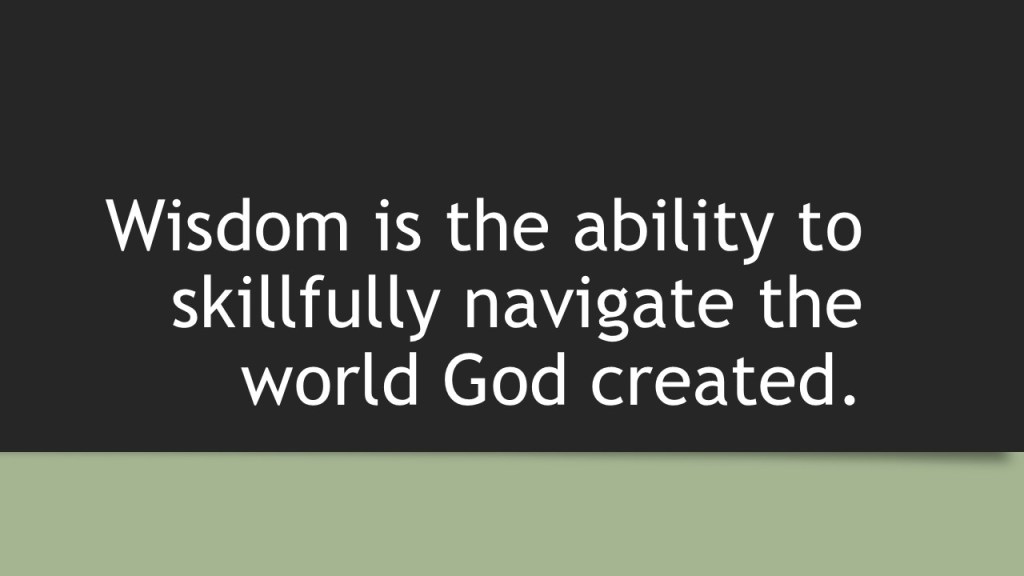 Remember wisdom is the ability to skillfully navigate the world God created. We become wise when we recognize this is God’s world and His approach to life works best. We are not naturally wise people. Wisdom is a gift from God, and it grows in us as we submit to His Word and practice His ways.
