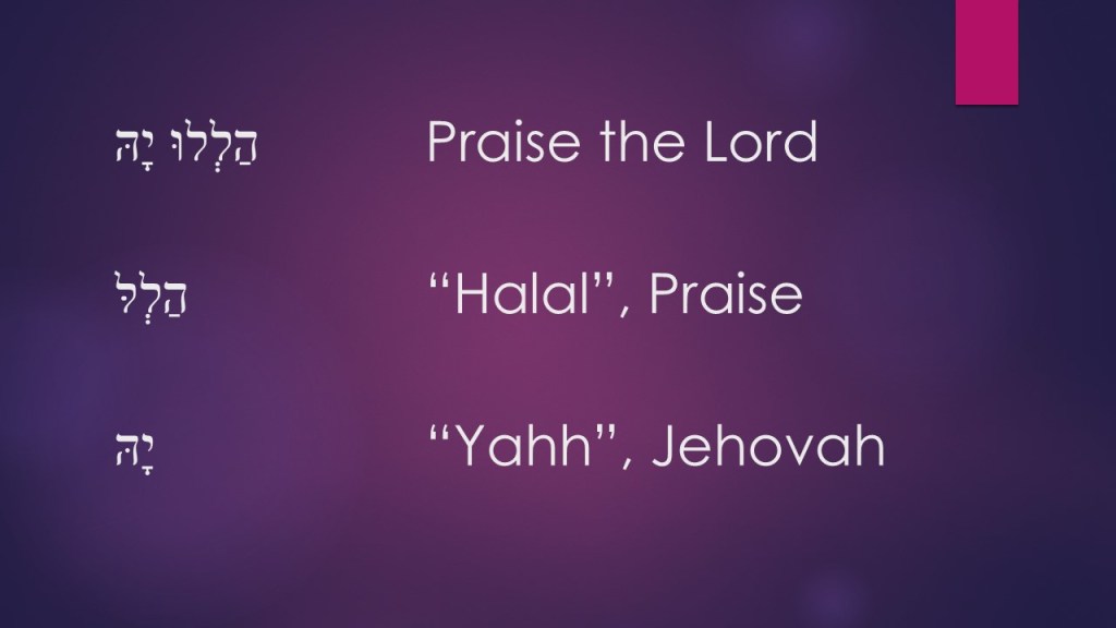 Let’s start with the verse 1, “Praise the Lord,” but let’s switch to Hebrew for a moment, because oddly enough we’re going to spend a lot of time just on the first word of this Psalm. The first word is “הַלְלוּ יָהּ”and I understand if you don’t recognize it at first, but you will. It’s made up of two parts –