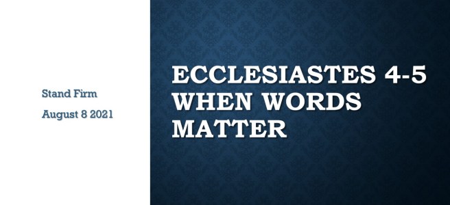 Today we’ll study Ecclesiastes 4-5, and the importance of words. In light of everything Solomon has learned, that everything is meaningless, do words even matter?