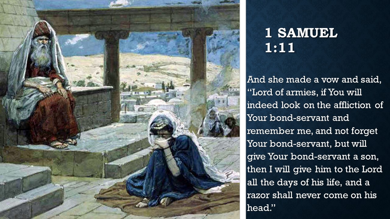 And she made a vow and said, “Lord of armies, if You will indeed look on the affliction of Your bond-servant and remember me, and not forget Your bond-servant, but will give Your bond-servant a son, then I will give him to the Lord all the days of his life, and a razor shall never come on his head.”