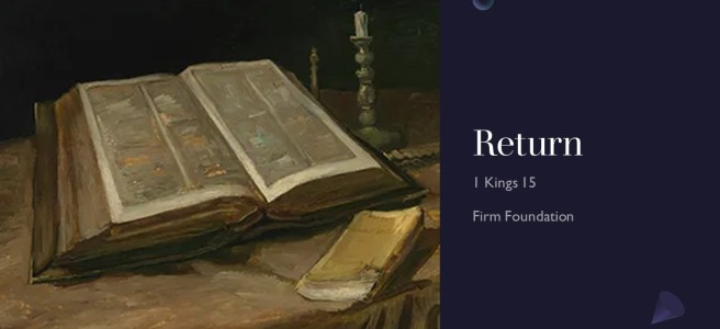 We’re continuing our review of the history of Israel, and we’re in 1 Kings 15 and studying King Asa. For some reason, the suggested title is “Return” which makes me think it’s related to a book I borrowed from the library when I was 12. I think a better title might be “Consistency” or “Endurance,” but we’ll stick with “Return” and the 10 cents a day fine I owe. Which would add up to $182.50 today, I did the math because why not.